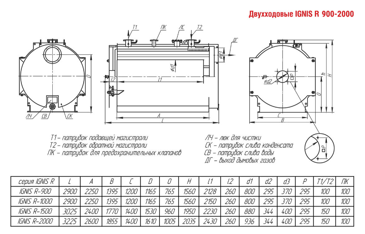Технические характеристики водогрейного двухходового котла ARCUS IGNIS R-1500
