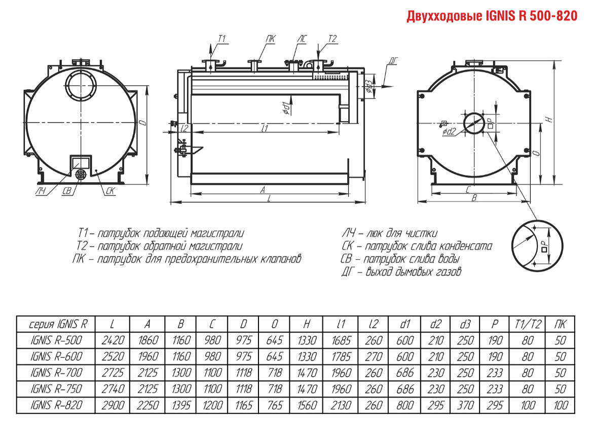 Технические характеристики водогрейного двухходового котла ARCUS IGNIS R-700