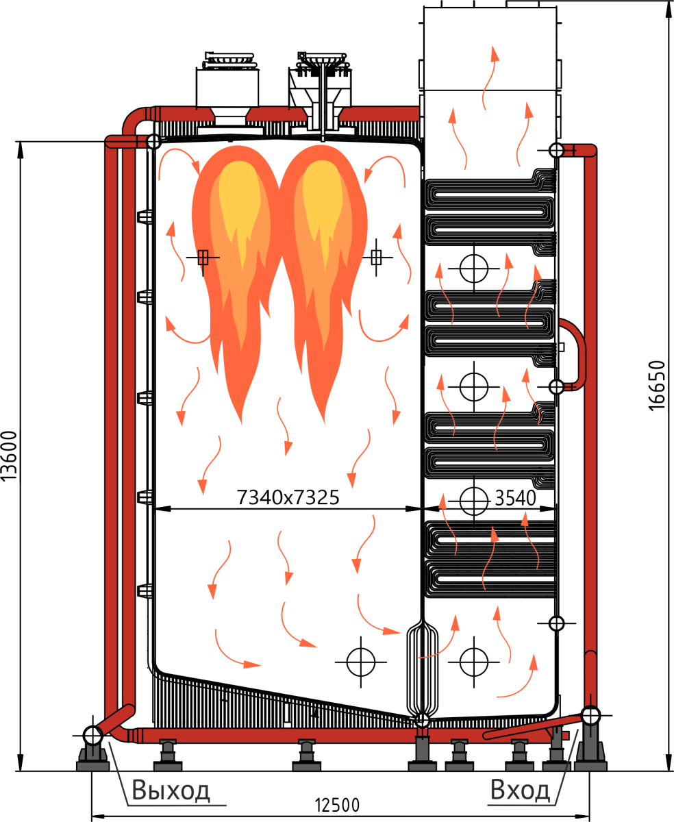 - Возможен монтаж взамен старых котлов аналогичной мощности без замены фундамента